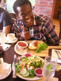Before leaving North Carolina, we continued our rebelliously delicious and ridiculously fresh forays into food at Rosetta’s Kitchen in downtown Asheville. Rosetta’s features a number of vegetables and ingredients sourced from the Swannanoa Valley. I ordered the special of the day – pickled maroon and golden beets atop a bed of fresh greens atop fry bread, dressed with a cilantro-cashew sauce. Yum.